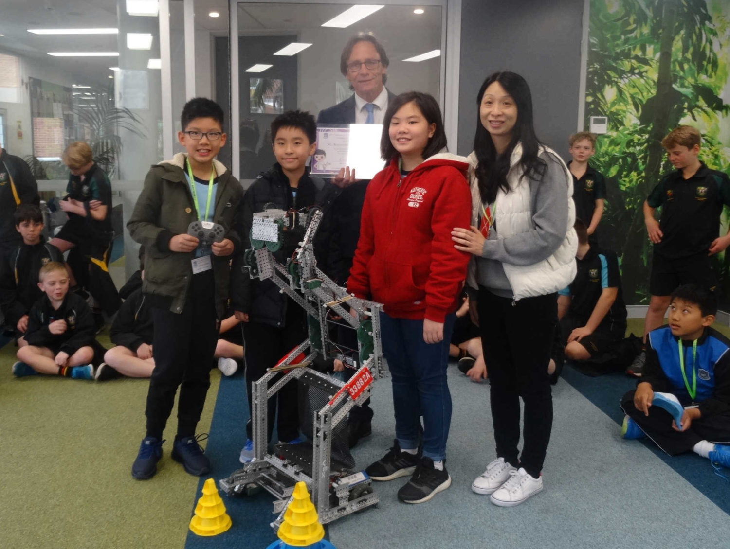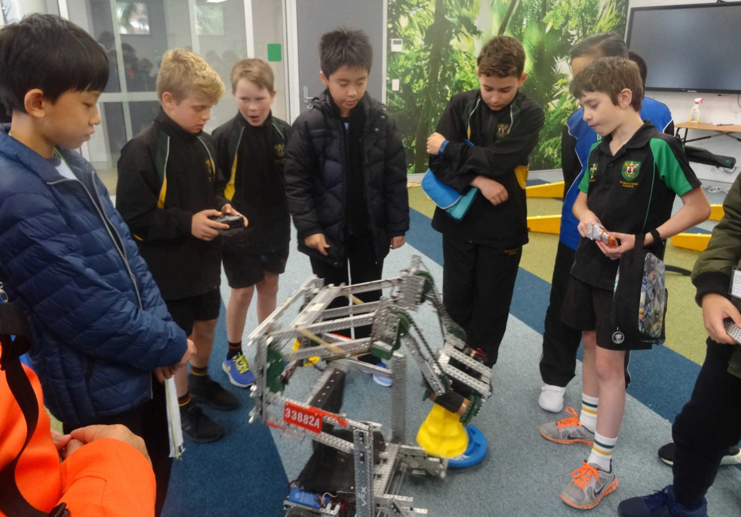 This week the Primary School hosted a Year 5/6 class from the Dr Catherine F. Woo Memorial School in Hong Kong. The children from Hong Kong and St Augustine’s participated in a shared music lesson, led by music teacher, Amelia Granturco. Observing sixty students connect from across the globe, sharing stories, playing handball and having recess together was a welcome relief from the media circus surrounding politics from over the weekend. The students from Hong Kong have been visiting schools in Australia as part of their STEM cultural overseas program. They concluded their visit by sharing their STEM project, a robot constructed entirely from aluminium and containing over 200 screws. It is incredible to believe that this programmed robot was designed, tested and constructed by these very clever students and their teachers.